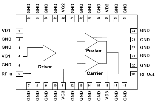 Figure 1: The Qorvo QPA4501 PAM incorporates a Doherty final stage for high power and efficiency.